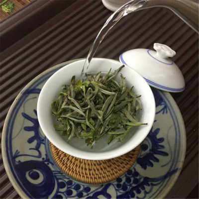 白牡丹因其绿叶夹银白色毫心,形似花朵,冲泡后绿叶托着嫩芽,宛如蓓蕾初放,故得美名。白牡丹是采自大白茶树或水仙种的短小芽叶新梢的一芽一二叶制成的,是白茶中的上乘佳品。